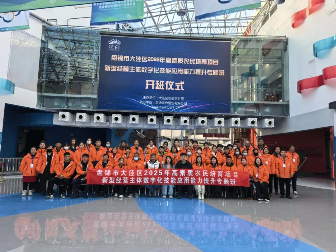 为深入贯彻落实党中央、国务院关于乡村人才振兴的决策部署,提升农民技术技能水平、产业发展能力和综合素质素养,11月22日,盘锦市大洼区2025年高素质农民培育项目-新型经营主体数字化技能应用能力提升专题班在盘锦光合蟹业有限公司开班。本次培训由大洼区农业农村局主办,盘锦光合蟹业有限公司承办,学员由大洼区11个乡镇的50名新型经营主体负责人、骨干成员组成,将开启为期10天的集中学习。